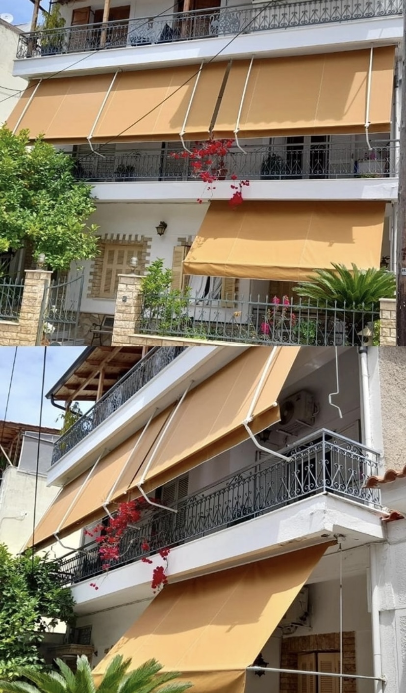 Χειροκίνητη τέντα με αντιρίδες